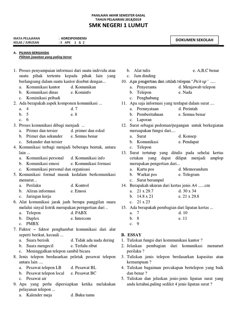 Kisi Kisi Soal Ulangan Harian Materi Otomatisasi Perkantoran Kelas X Jawabanku Id from imgv2-1-f.scribdassets.com We did not find results for: Maybe you would like to learn more about one of these? Check spelling or type a new query. Soal jawab otk perkantoran kls 10,11,12.